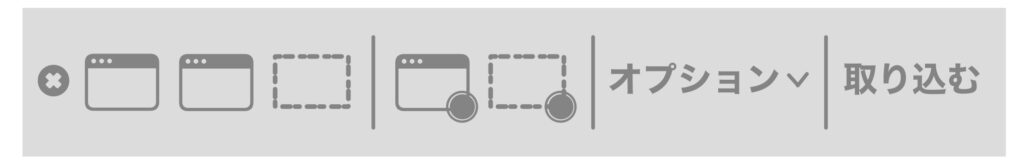 スクリーンショットアプリを起動すると以下のようなメニューが表示されるので、その中の「オプション」をクリックします。