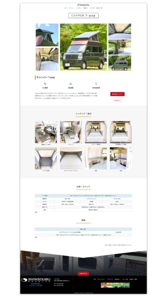 以前に当社で制作させていただいた新相武株式会社様のキャンピングカーサイトですが、この度2車種新しいラインナップが増えたとのことで、今回それを掲載するための新しいページを追加しました。