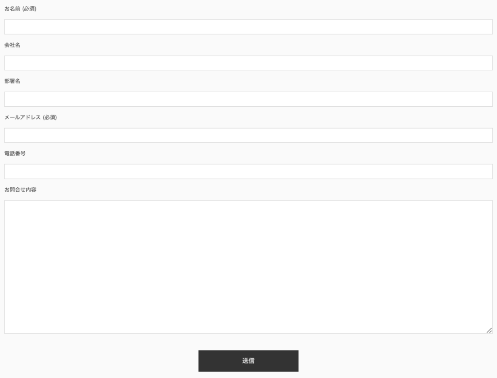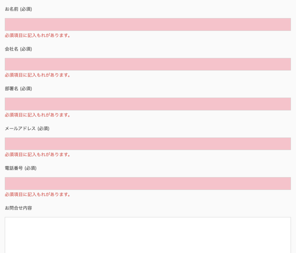 対応後はそれらに加え、会社名などの入力も必須に変更いたしました。