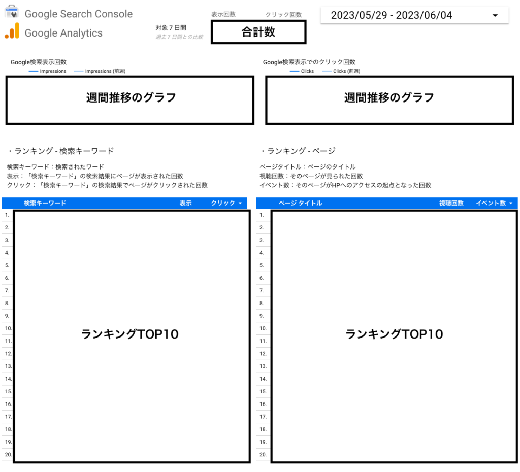 Looker StudioとサーチコンソールやGoogleアナリティクスを連携することで、それらのデータをA4サイズほどのシンプルで見やすい形にまとめることができます。