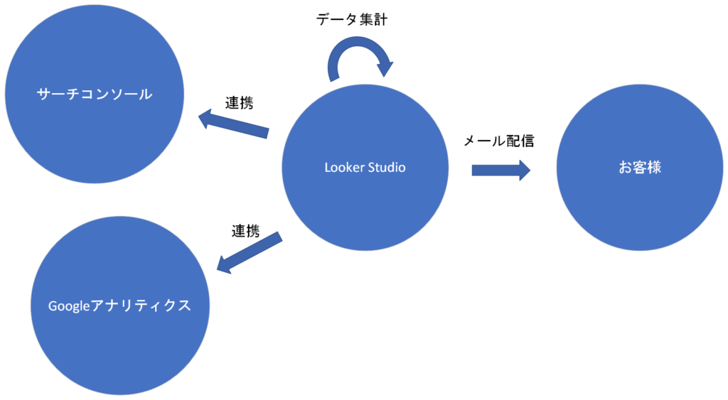 それらを解消する方法として、サーチコンソールやGoogleアナリティクスのデータを集計し、お客様にメール配信するまでを仕組み化いたしました。