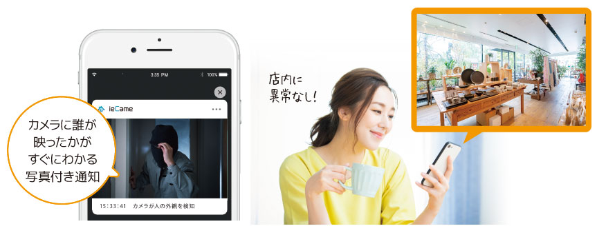 コロナ禍で無人化・省人化が進む小規模オフィスや店舗をスマホでいつでもどこからでも見守ることができる、Wi-Fi対応のネットワークカメラ「ieCame(イエカメ)」の紹介です。