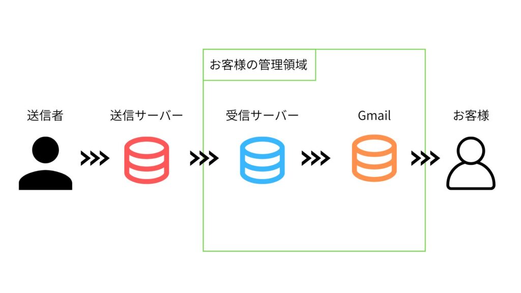 Gmailはあくまでメーラーとして利用し、実際のメールサーバーは外部で運用されている構成です。