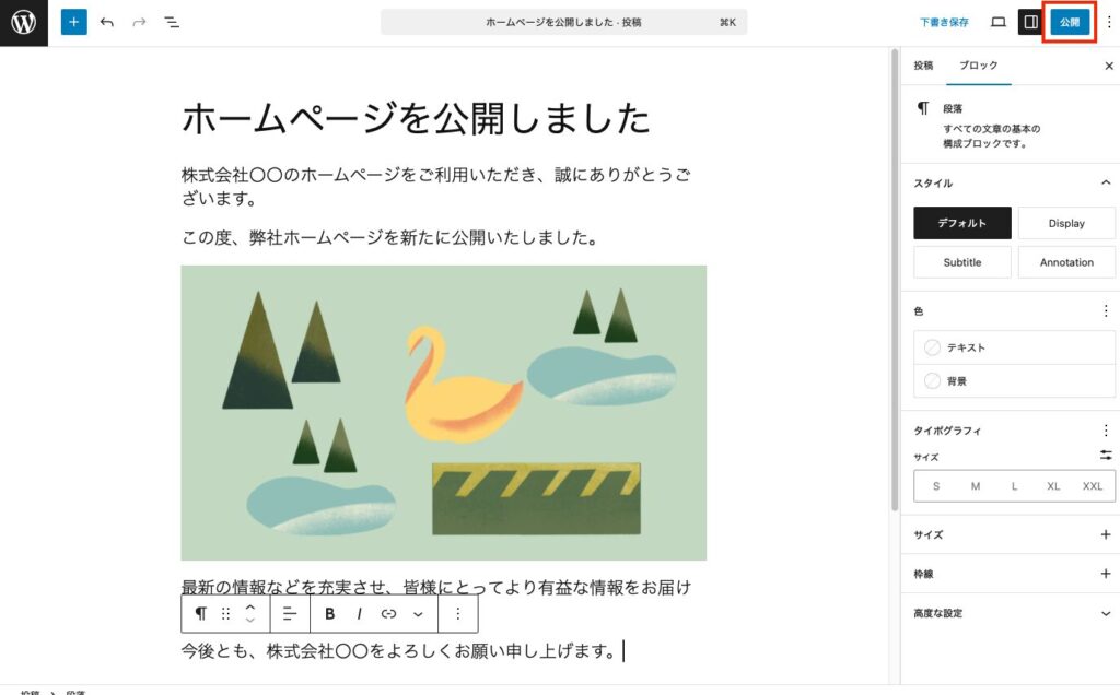 公開したときのプレビューが表示されます。デザインやレイアウトはWordPressテンプレートに依存します。