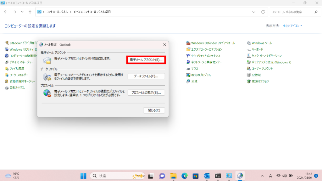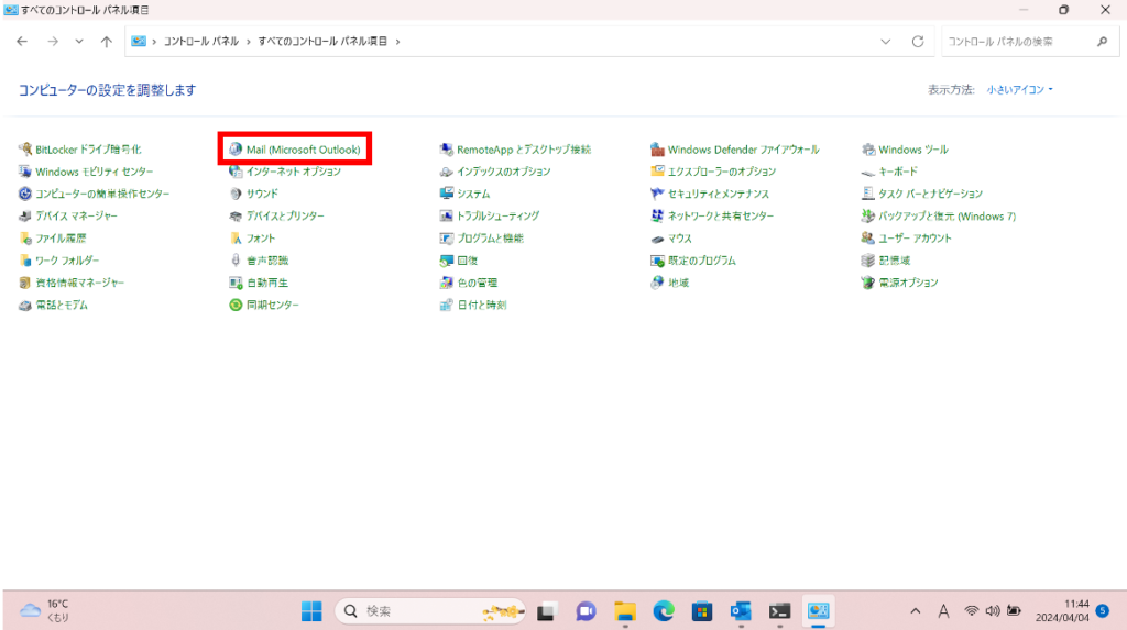 [コントロールパネル]の表示が切り替わるので、そこから[Mail(Microsoft Outlook)]をクリックします。