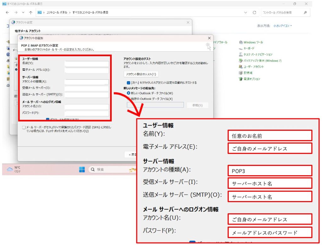 既存のメールアカウントのサーバー情報を変更する