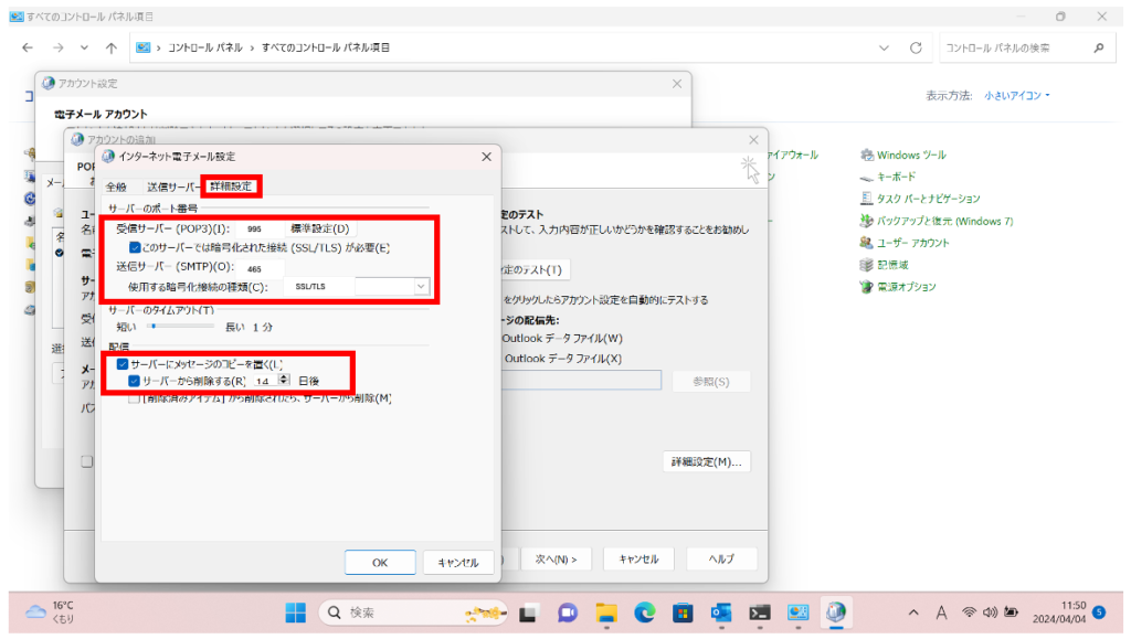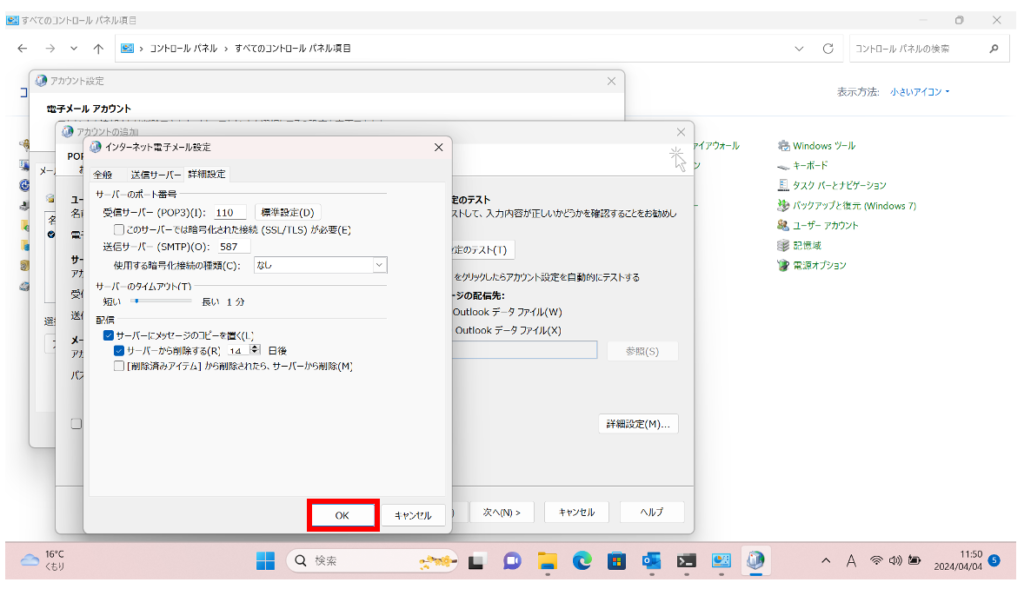 以上で既存メールアカウントの設定変更は完了です。