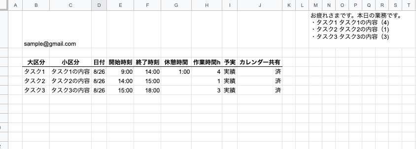 - スプレッドシートに入力した予実をGooleカレンダーに共有する