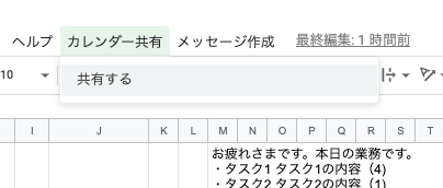 - Googleカレンダーに実績を共有するときは、その日のスプレッドシートから共有されている予定は削除する