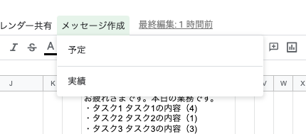 - スプレッドシートに入力した予実からチャットに流す用のメッセージをつくる