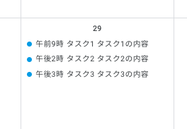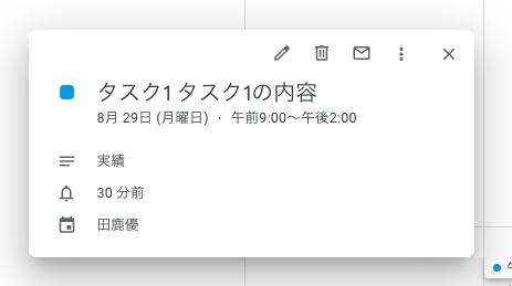一覧に入力されている項目が上記のような場合、Googleカレンダーへは次のように共有されます。
