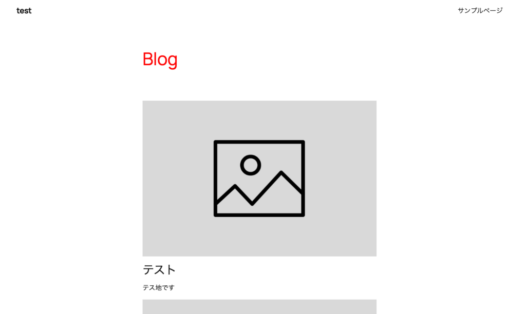 子テーマを有効化してWEBページを見ると、子テーマのstyle.cssに記載した.wp-block-headingのCSSが適用されているのが確認できます。