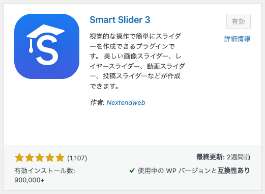 サムネイル付きスライドを表示したいWordPressにSmart Slider3をインストールして有効化します。