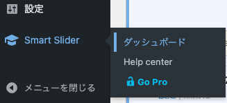 Smart Slider3を有効化するとWordPress管理画面左側のメニューに「Smart Slider」が表示されます。