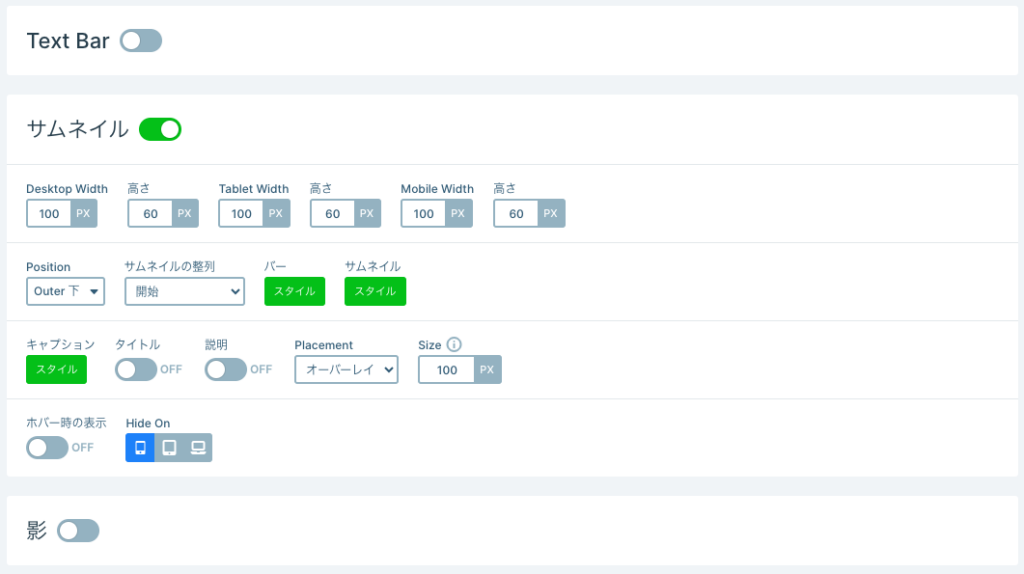 サムネイルスライドの設定