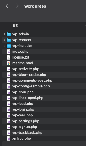 解凍されたファイルがすべてWordPressを動かすのに必要です。
