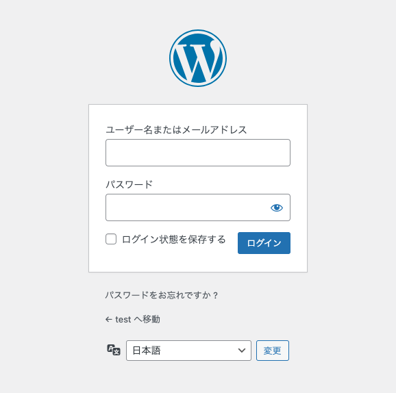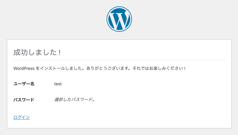 WordPressのインストール完了画面で「ログイン」をクリックしてWordPress管理画面にログインします。