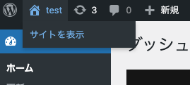 WordPress管理画面左上あたりにインストール時に入力したサイトタイトルが表示されています。