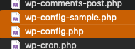 WordPress構成ファイルの「wp-config-sample.php」を複製して「wp-config.php」にリネームします。