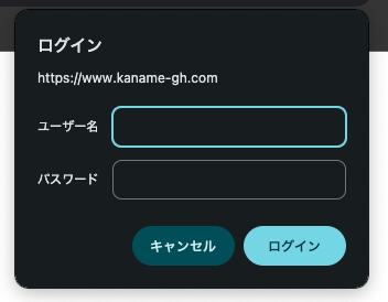 次のようなメニューがポップアップで表示されるとBasic認証が設定できています。