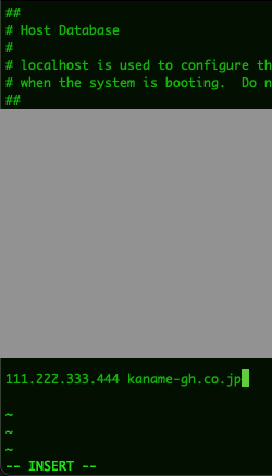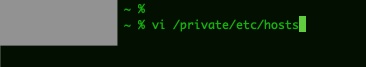 ドメインとIPアドレスの組み合わせを管理しているhostsというファイルがMacだと「/private/etc/hosts」にあるのでそれを「vi」コマンドで編集します。