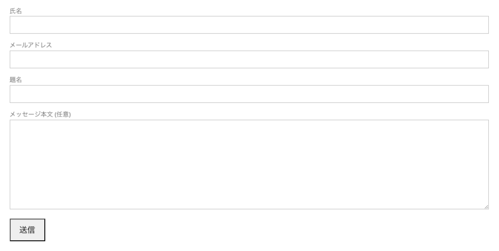 サンプル設定でContact Form 7のショートコードをページに埋め込むと、次のようなお問い合わせフォームが表示されます。