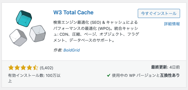 W3 Total Cacheをインストール・有効化する