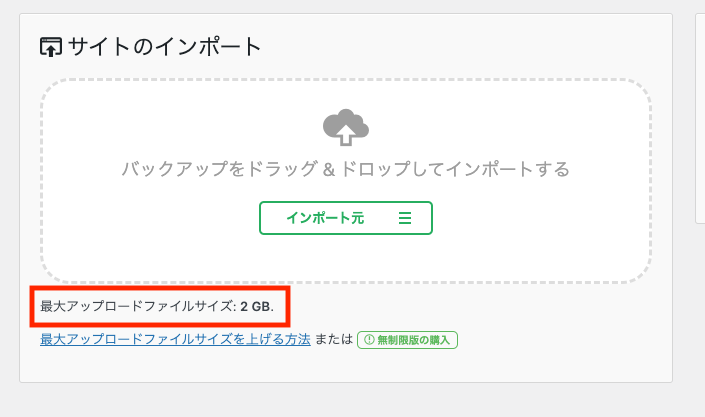 All-in-OneWPMigrationでインポートが100%のままになるときとはインポートしようとしたファイルのサイズが大きすぎることが原因と考えられるので、.htaccessを修正してその上限を引き上げます。
