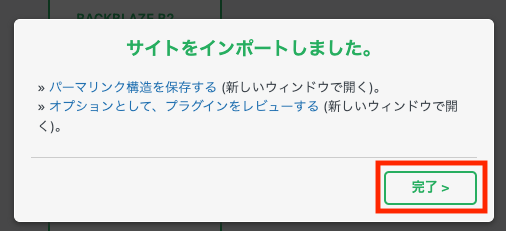 完了すると次のような画面が表示されます。「完了」をクリックして画面を閉じます。