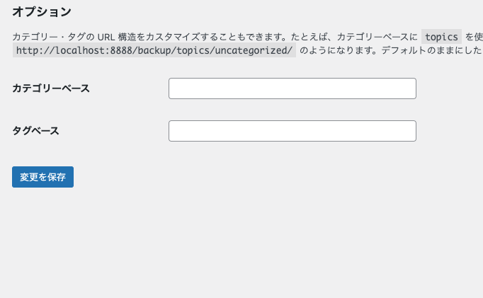 WordPresss管理画面の左側メニューから「設定 - パーマリンク」をクリックします。設定内容はなにも触らずにパーマリンク設定画面下部にある「変更を保存」をクリックします。