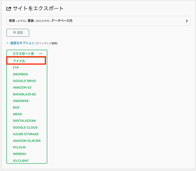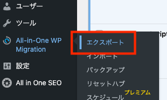 All-in-One WP Migrationのエクスポート画面を開きます。