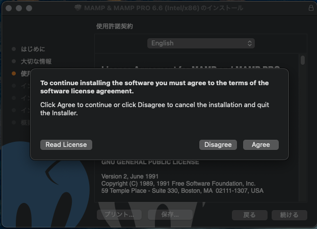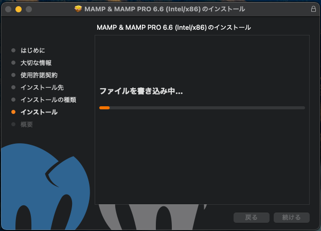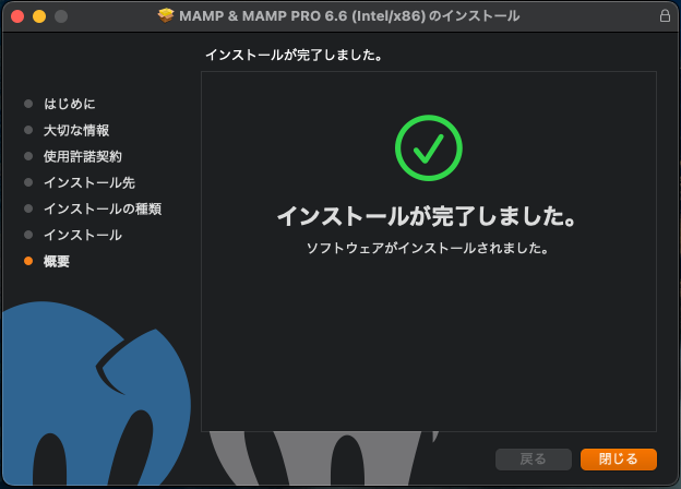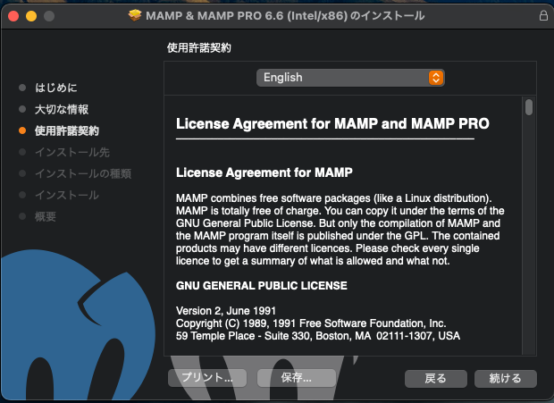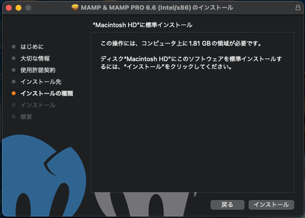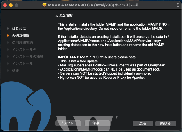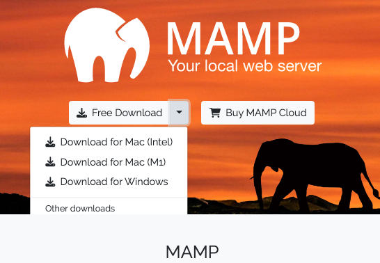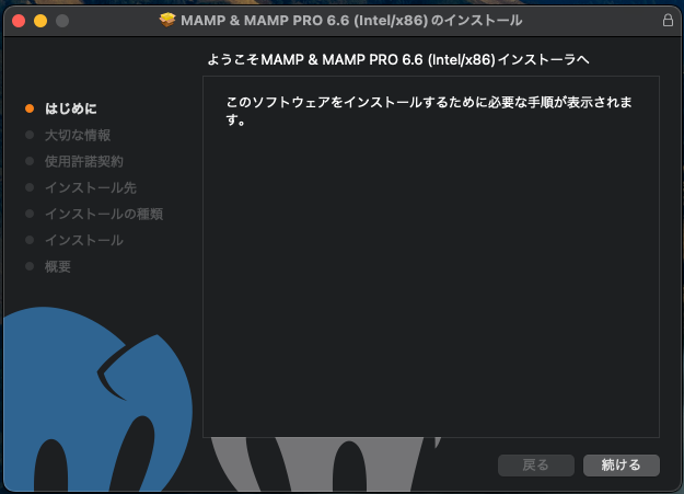 MAMPのサイト(https://www.mamp.info/)からインストーラーをダウンロードします。