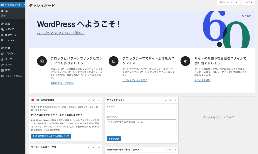 「6.0.2」の部分は、その時のWordPressバージョンによって異なります。