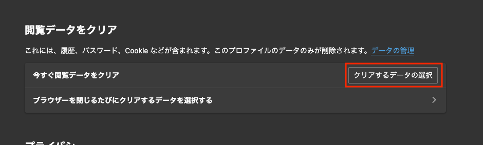 Edgeの設定からキャッシュクリア(削除)する