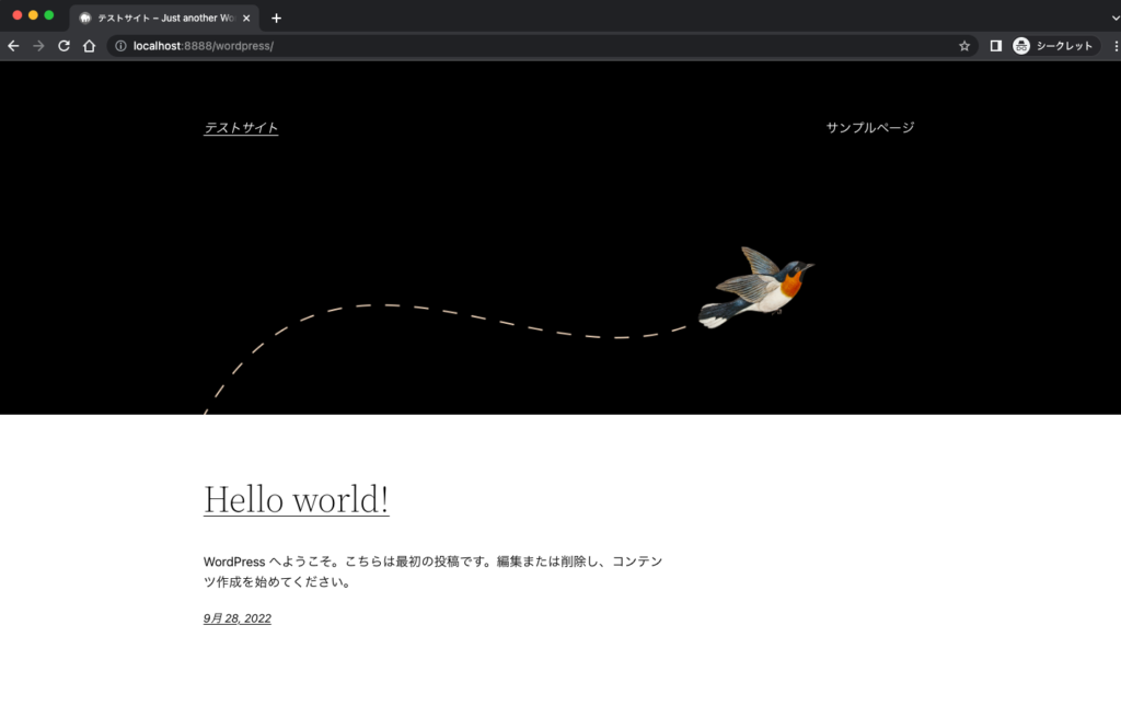 一通りの設定が完了したら、ブラウザから「http://localhost:8888/ディレクトリ名/」にアクセスします。